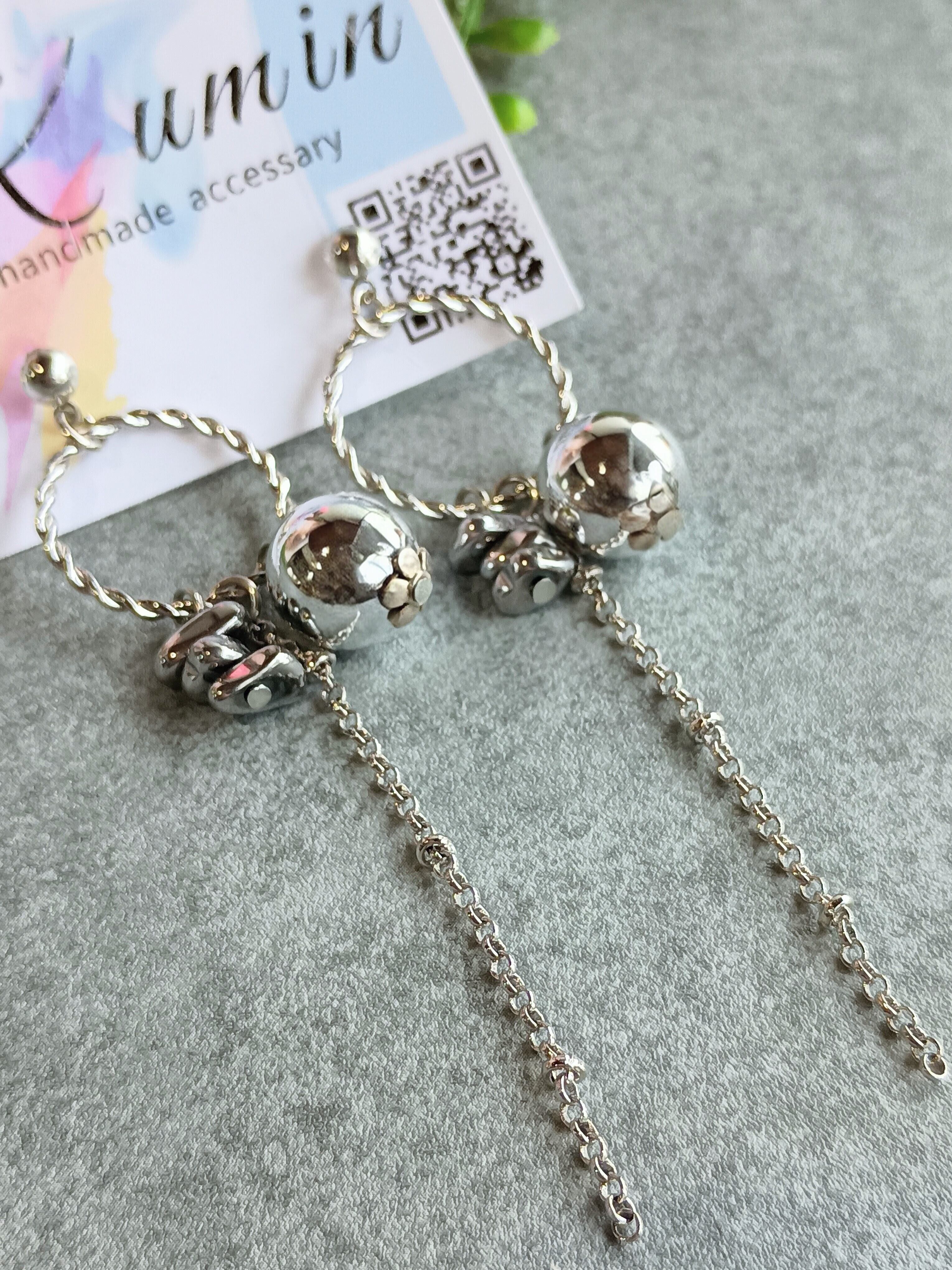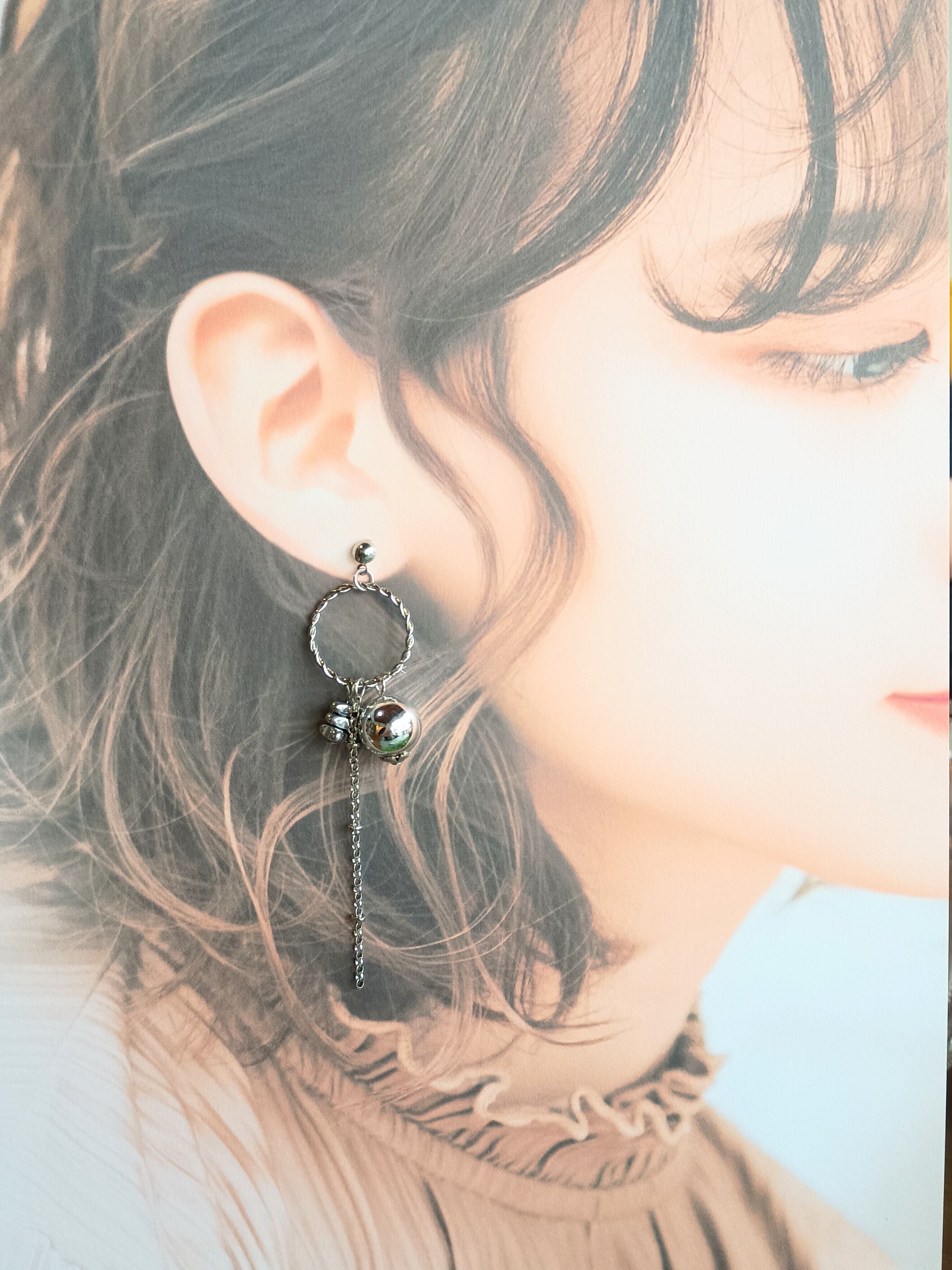 シンプルなデザインの中に繊細なチェーンが揺れるシルバーピアスです。