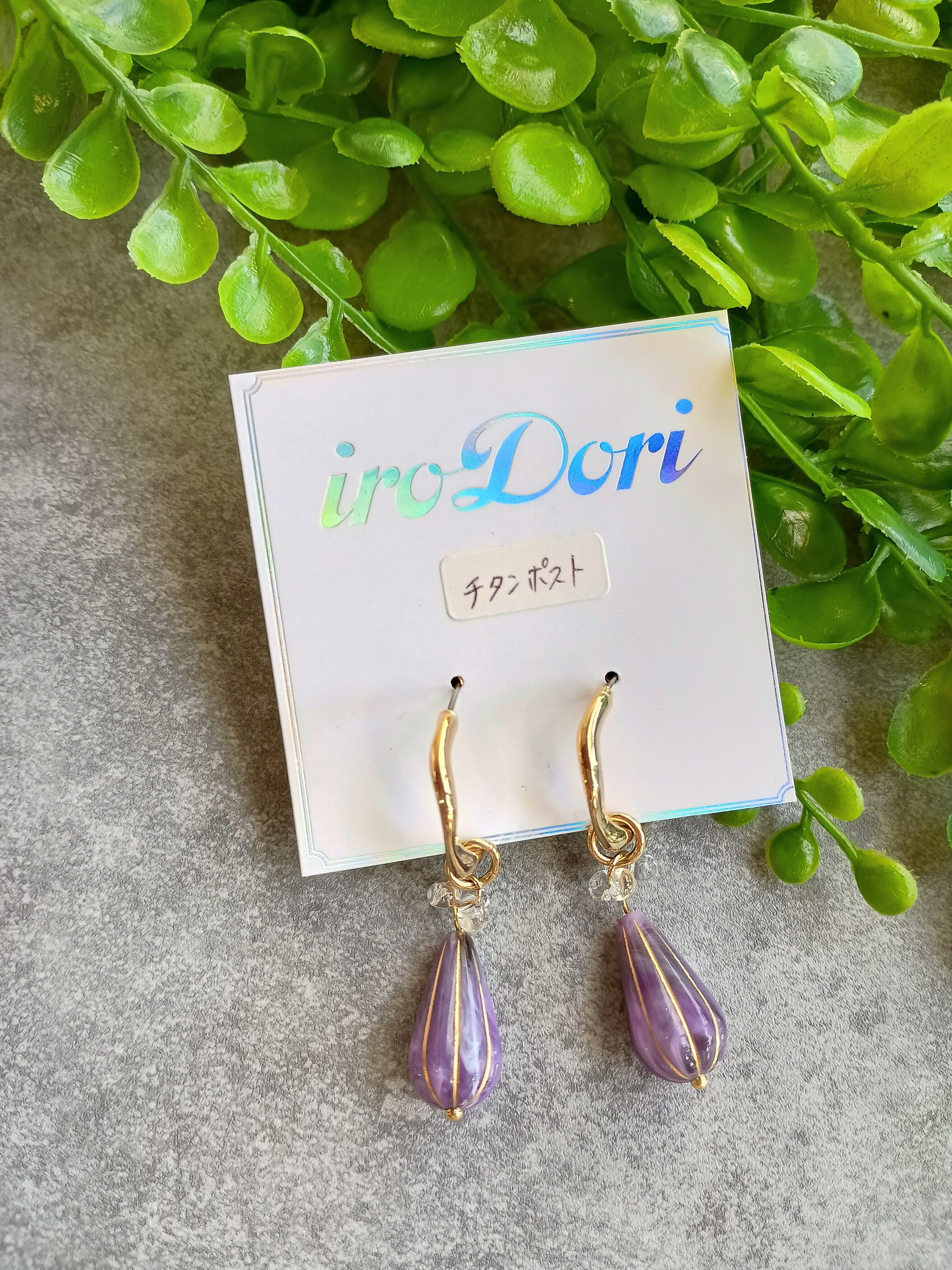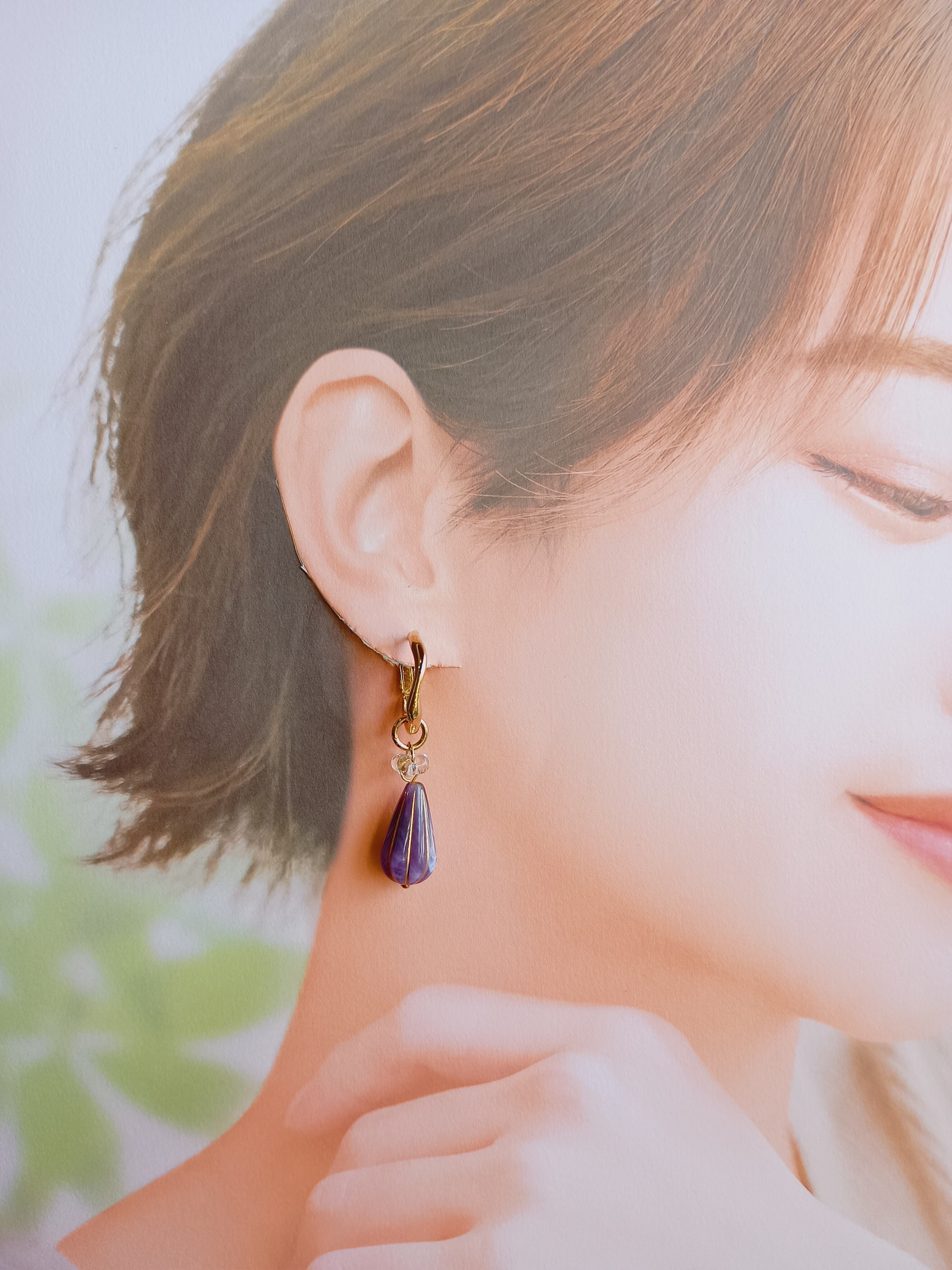 アンティーク感のあるパープルで作られたしずく形のピアスです。