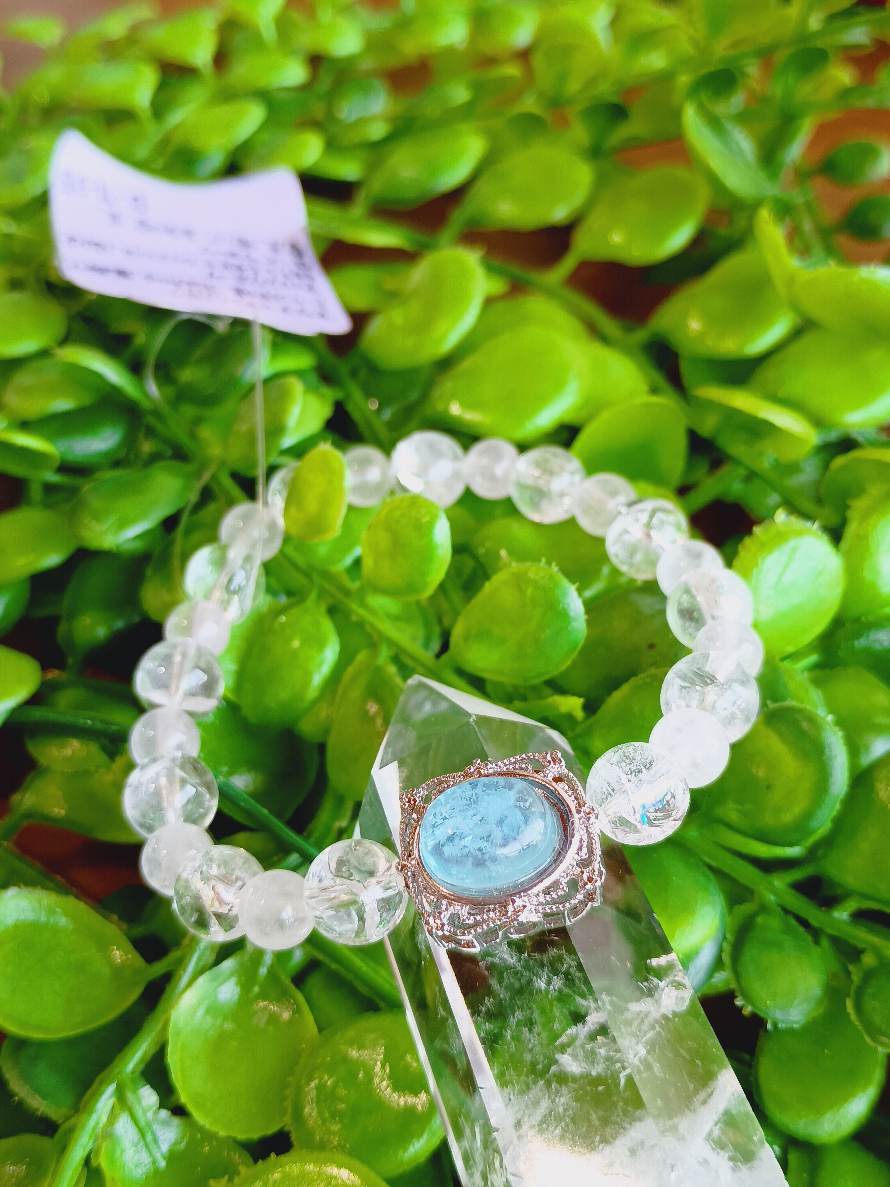 アクアマリン、アイリスクォーツ、ローズクォーツの三種の天然石を使用したブレスレットです♪